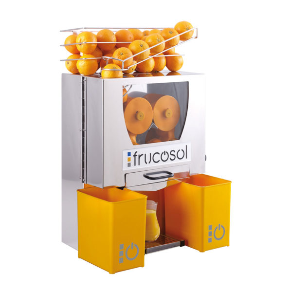 The device is made of the highest quality, high quality stainless steel, which ensures its durability and longevity. Designed to produce juice directly before the customer’s eyes from fresh oranges. Full automation and a fruit basket on the top of the machine ensure that approximately 4 kg of fruit are placed at the same time. Compact dimensions allow to place it in any location of the premises – it does not take up much space. The device is robust, functional and easy to use by staff. It has control over the pressure of the fruit, which guarantees maximum use of the batch product.